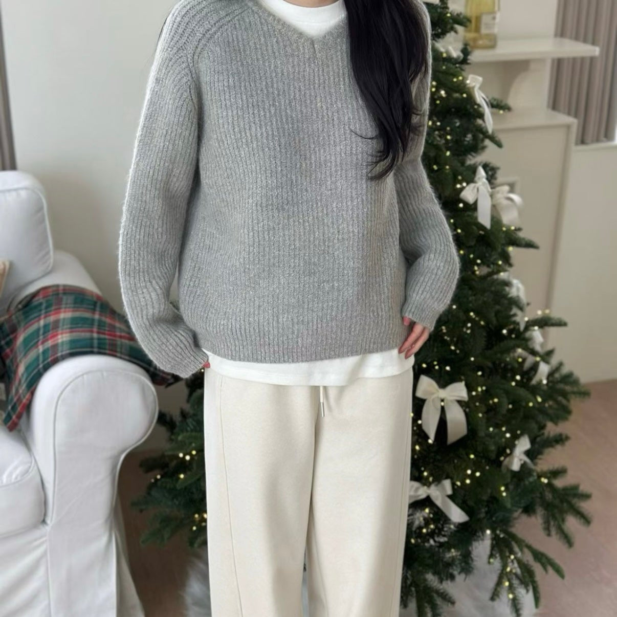 小V領5色針織毛衣