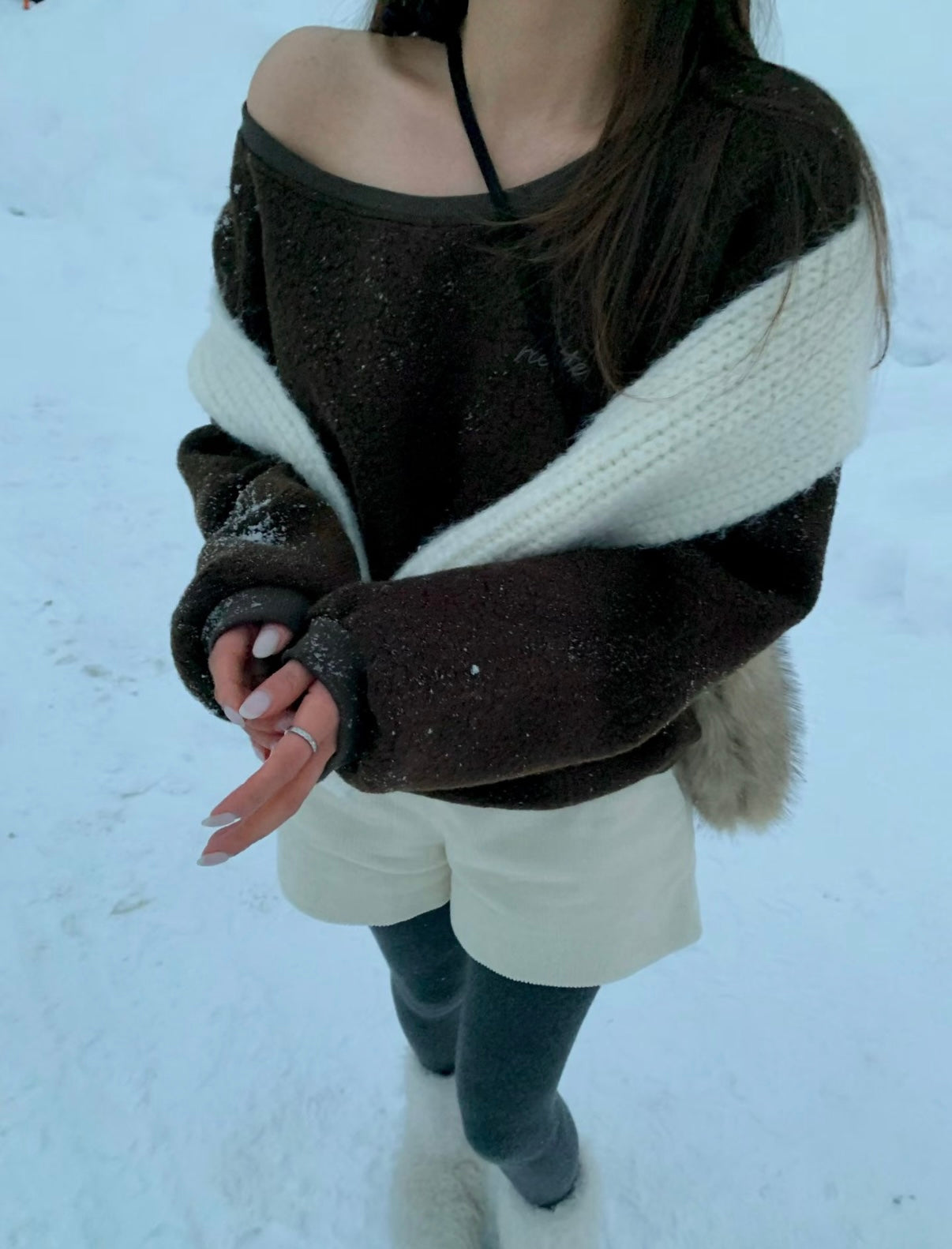 超暖羊毛材質寬鬆設計,拉斜肩或平領都超好看,袖口及下擺都有彈性收邊,冬季首選。