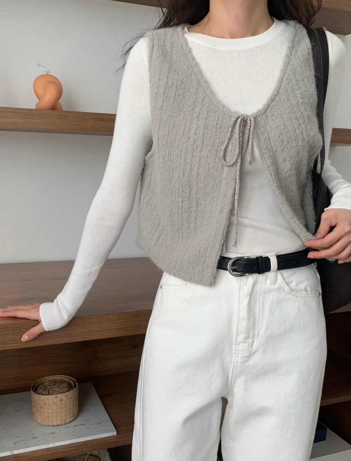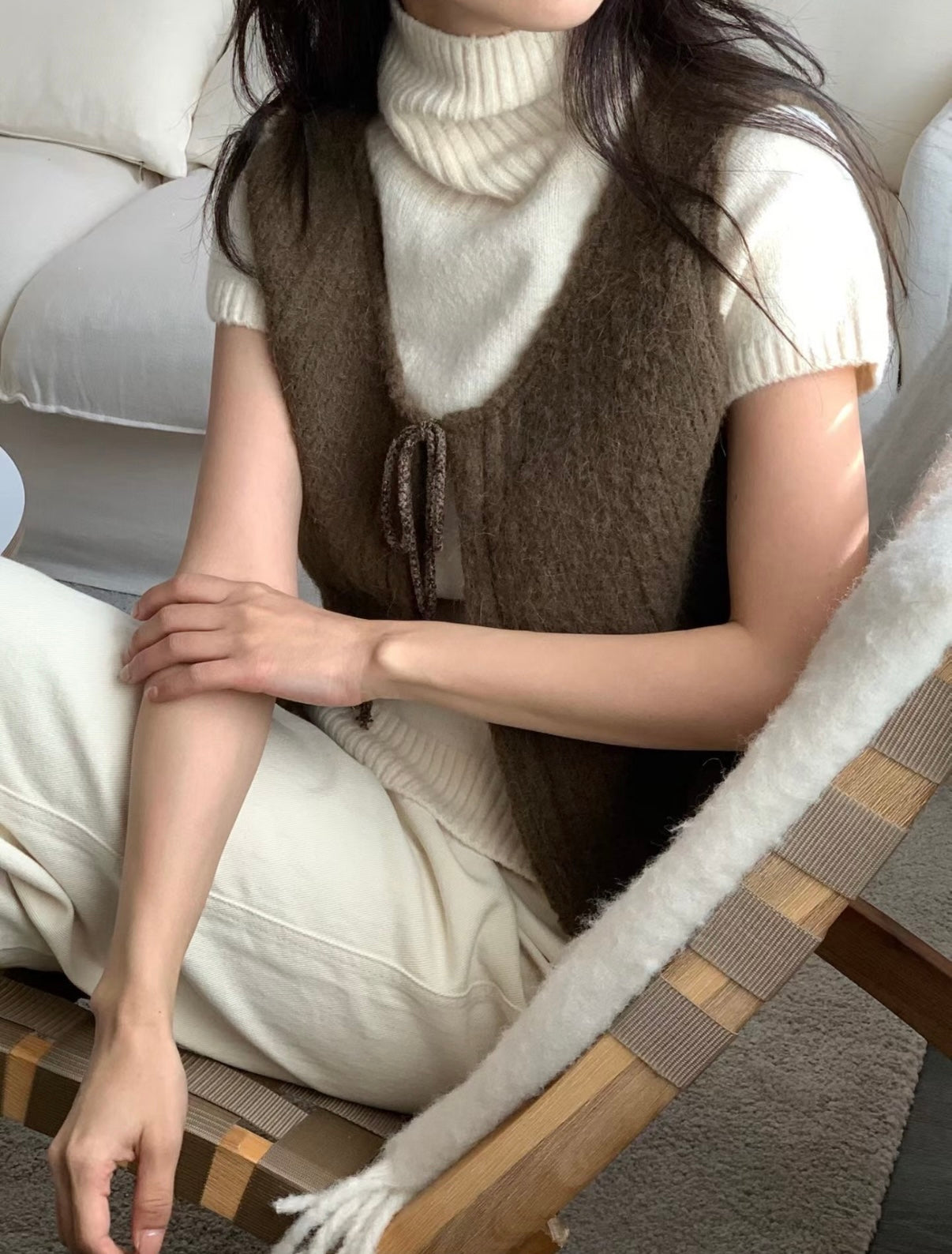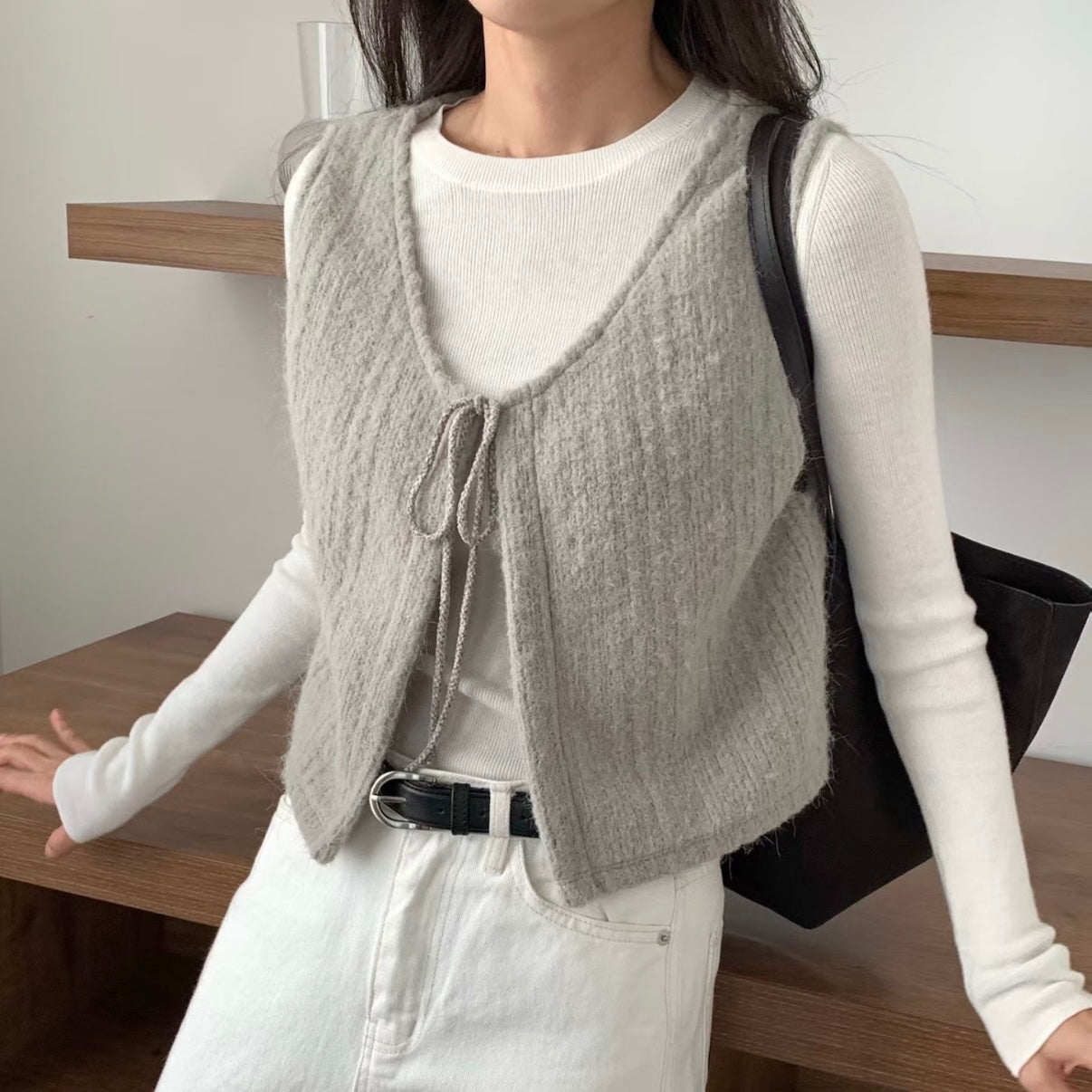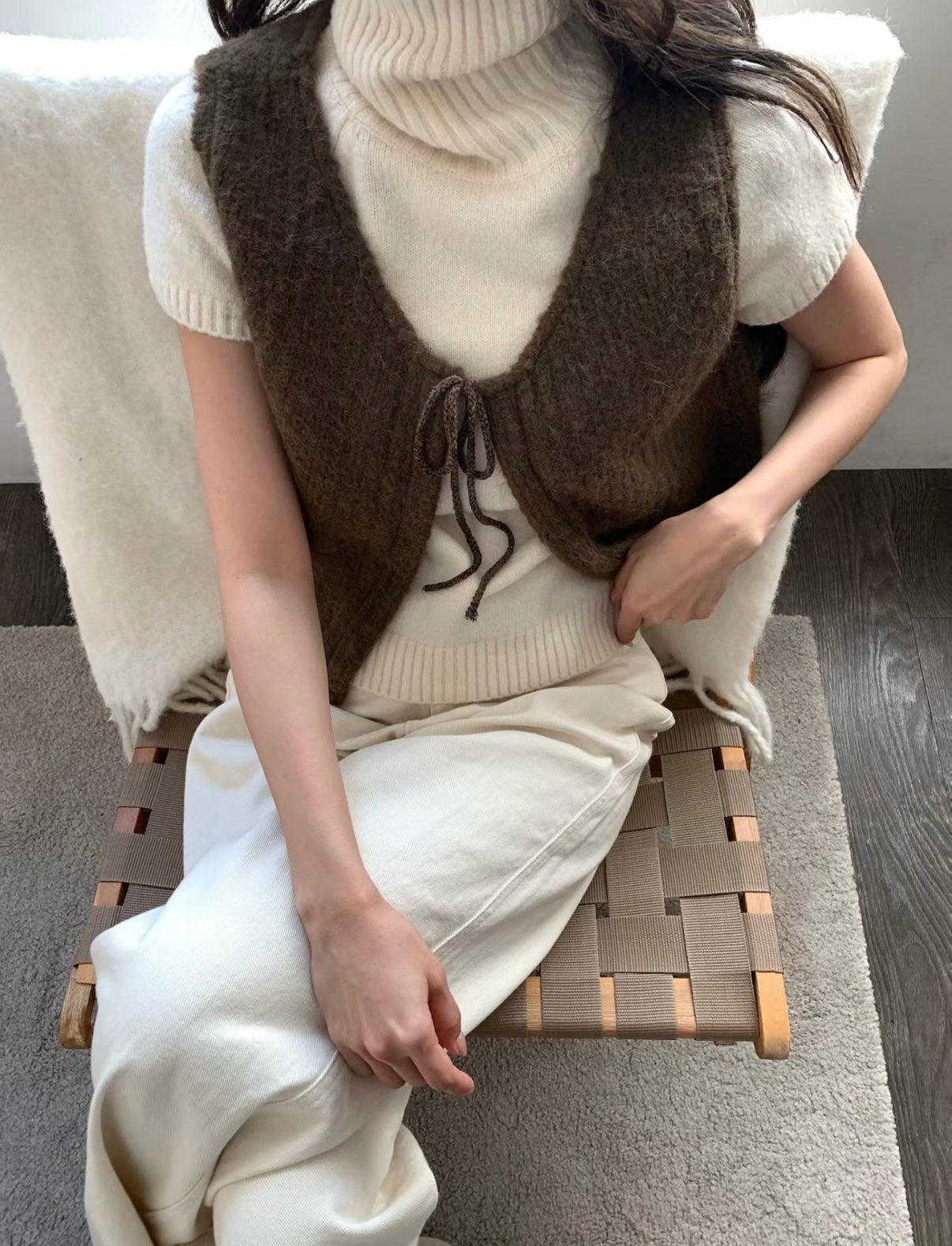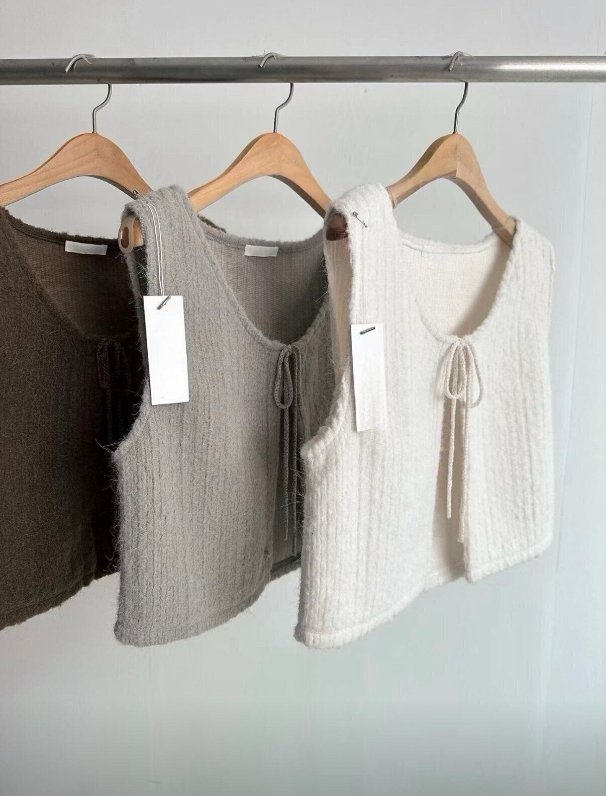 馬甲式繫繩設計小背心,羊毛材質親膚質感超舒服,外搭超美又優雅。