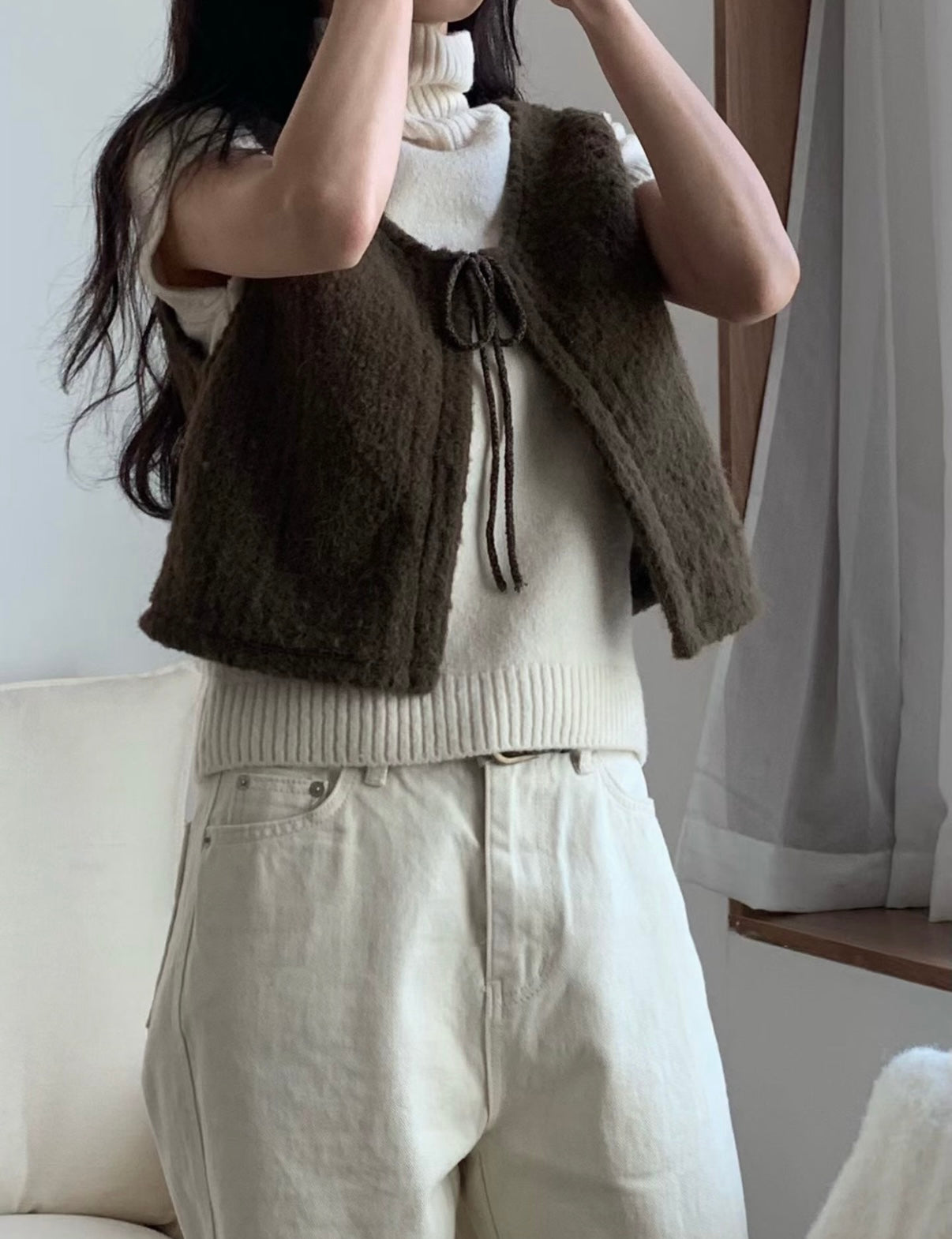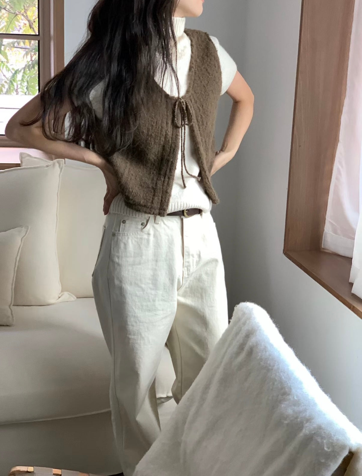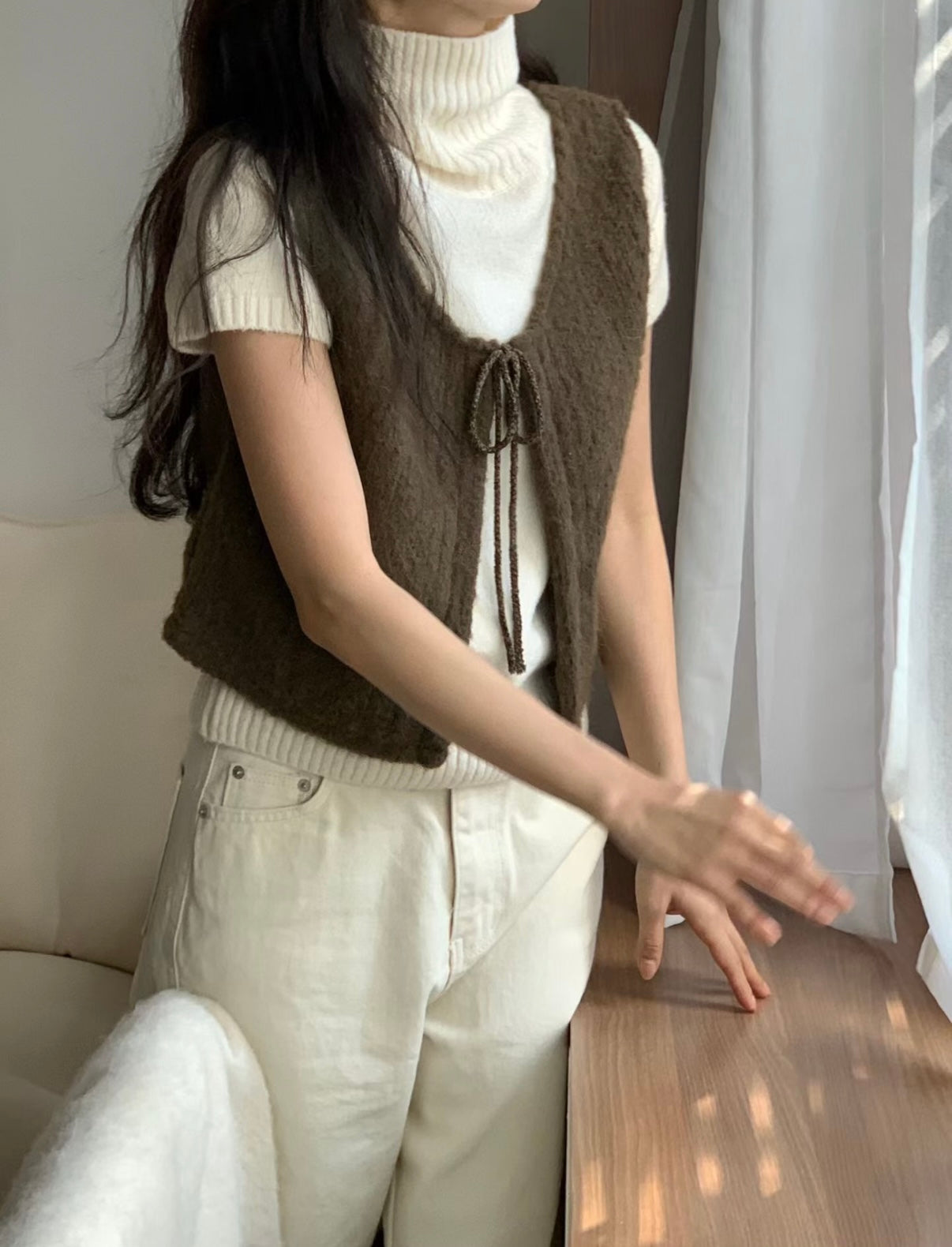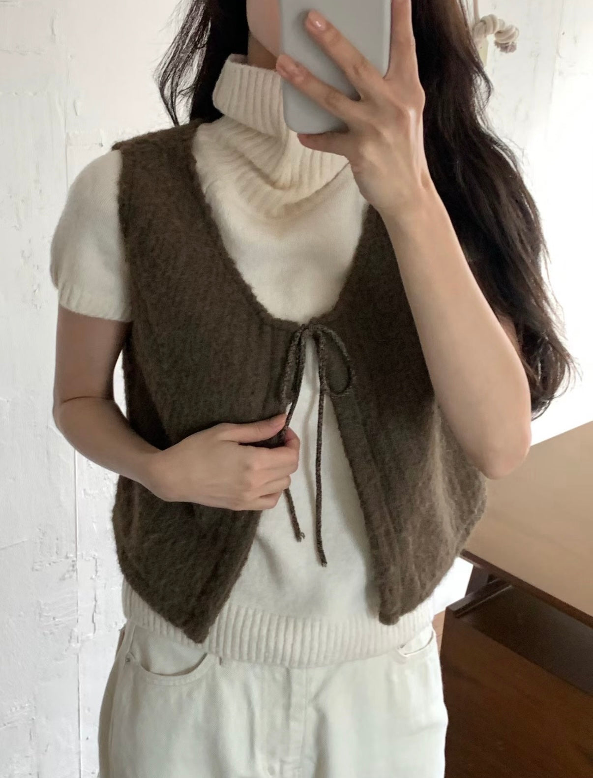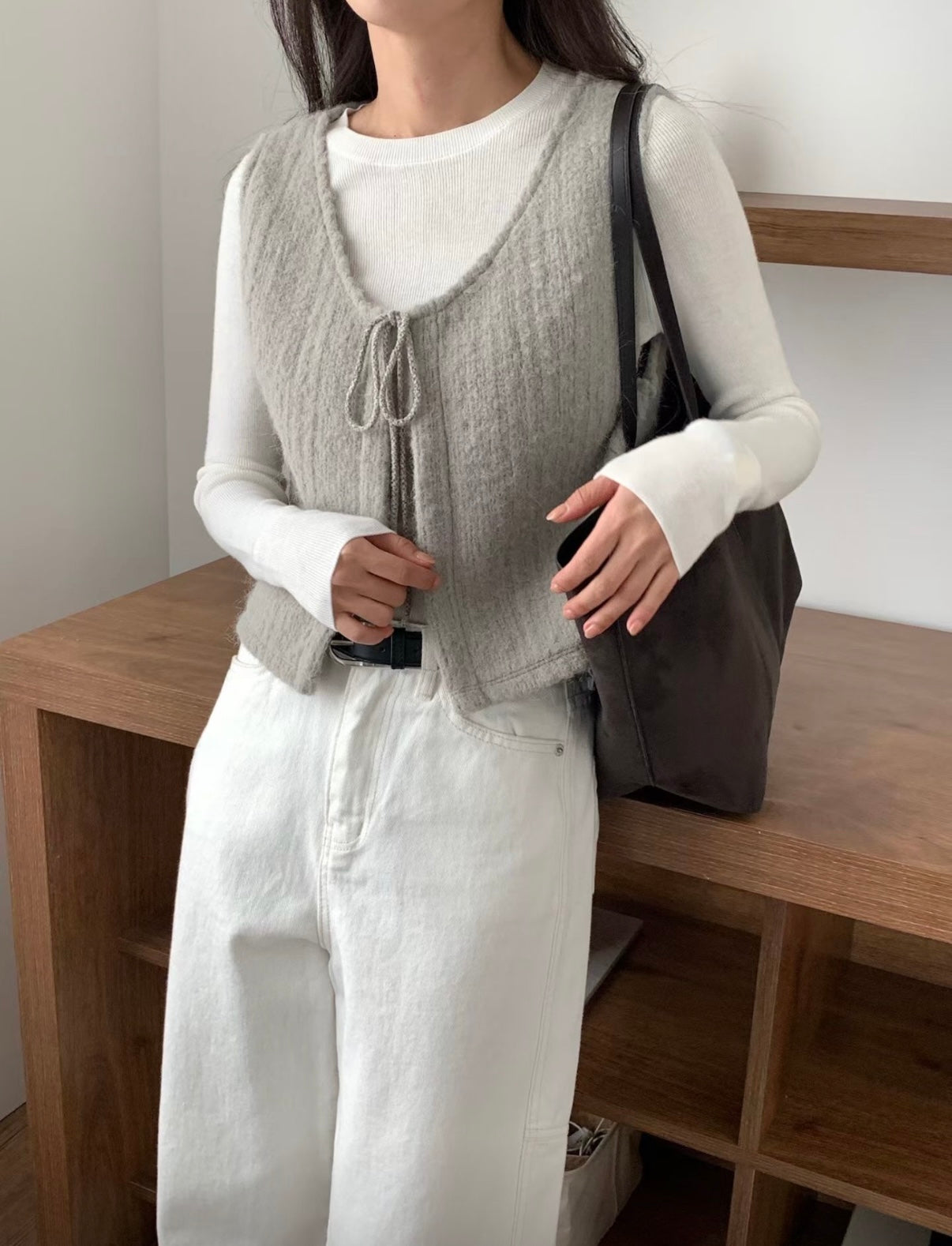 馬甲式繫繩設計小背心,羊毛材質親膚質感超舒服,外搭超美又優雅。