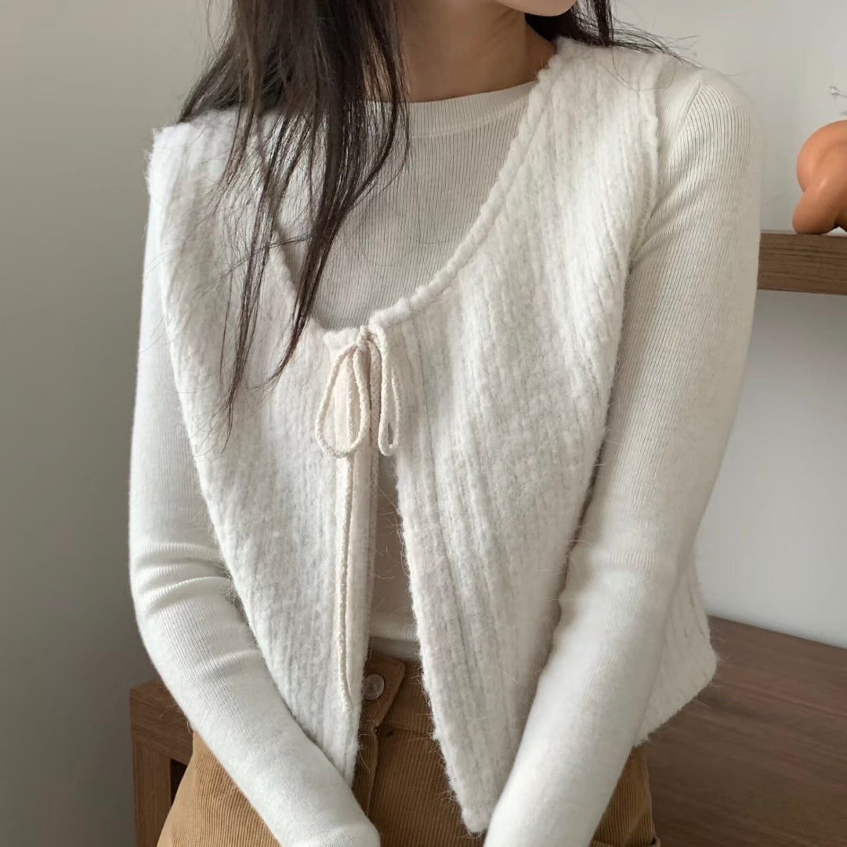 暖呼羊毛繫繩小背心